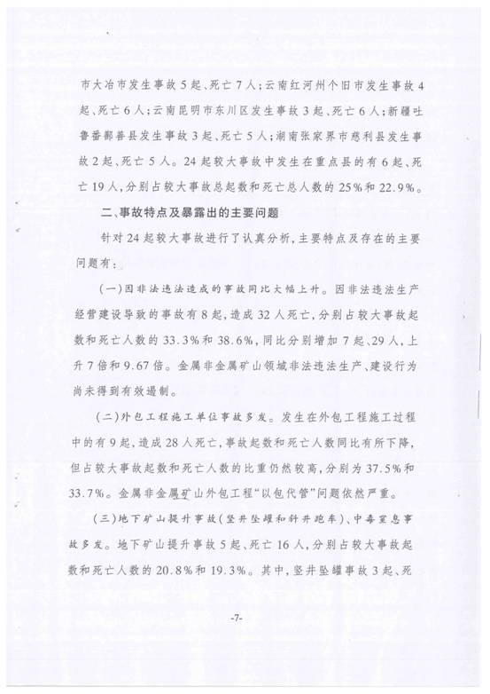 今年以来非煤矿山生产安全事故情况的通报