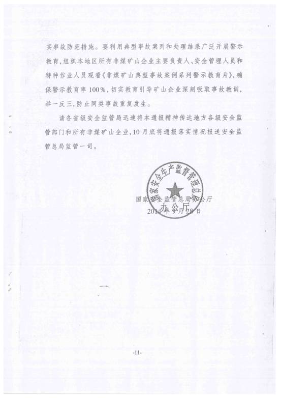 现将苍南县安全生产监督管理局《转发关于今年以来非煤矿山生产安全事故情况的通报》(苍安监[2014]55号)转发给你们,请按要求做好贯彻落实。